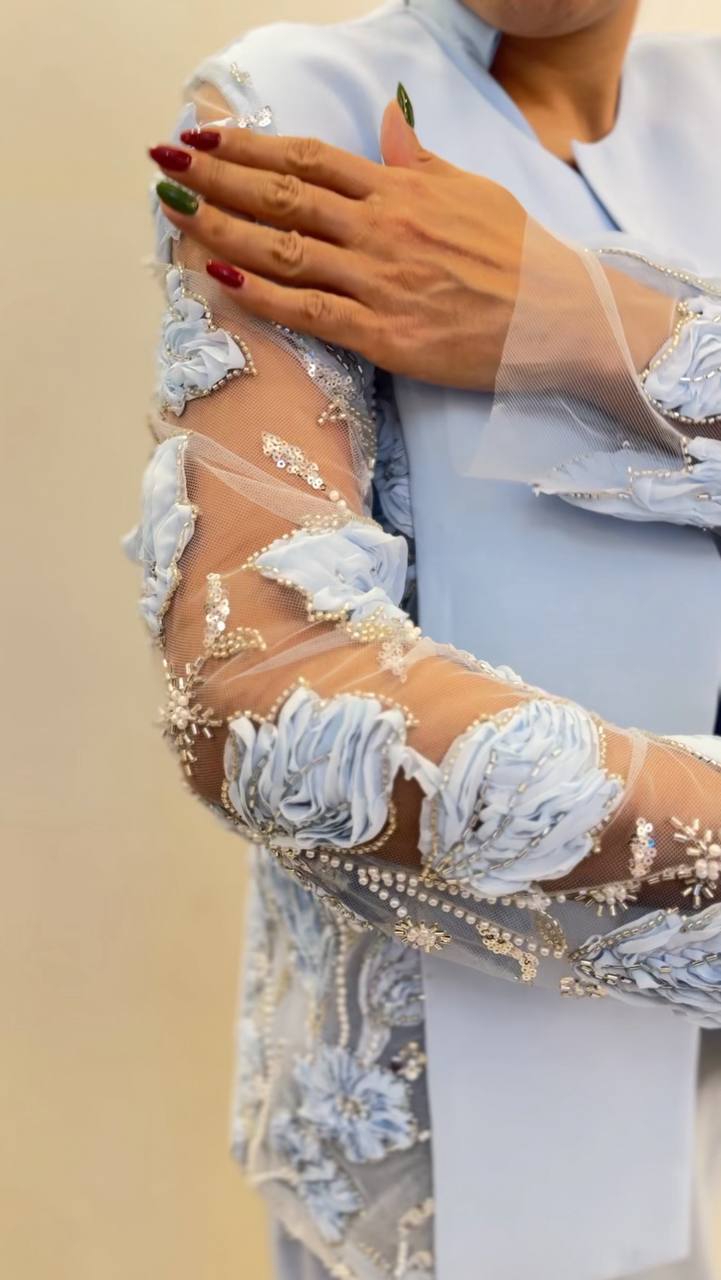 کت مجلسی زنانه با آستین کار شده و جواهردوزی