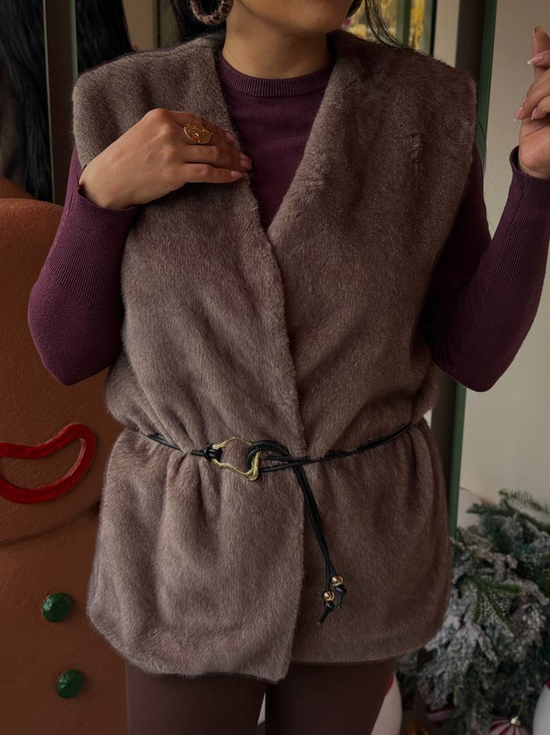 داخل این وست به طور کامل آسترکشی شده تا ایستایی کار روی تن به شکلی حرفهای و مزونی باشد و از نفوذ سرما جلوگیری کند. وجود یک کمربند ظریف همراه با این وست، هوشمندی طراحی آن را تکمیل کرده است؛ شما میتوانید با بستن کمربند، فرم کمر را برجسته کرده و استایلی کلاسیک بسازید و یا با باز گذاشتن آن، یک استایل کژوال و مدرن (Oversize) داشته باشید. رنگبندی خاص و طبیعی این کار، به راحتی با انواع شومیزهای تیره و روشن یا بافتهای یقه اسکی ست میشود.