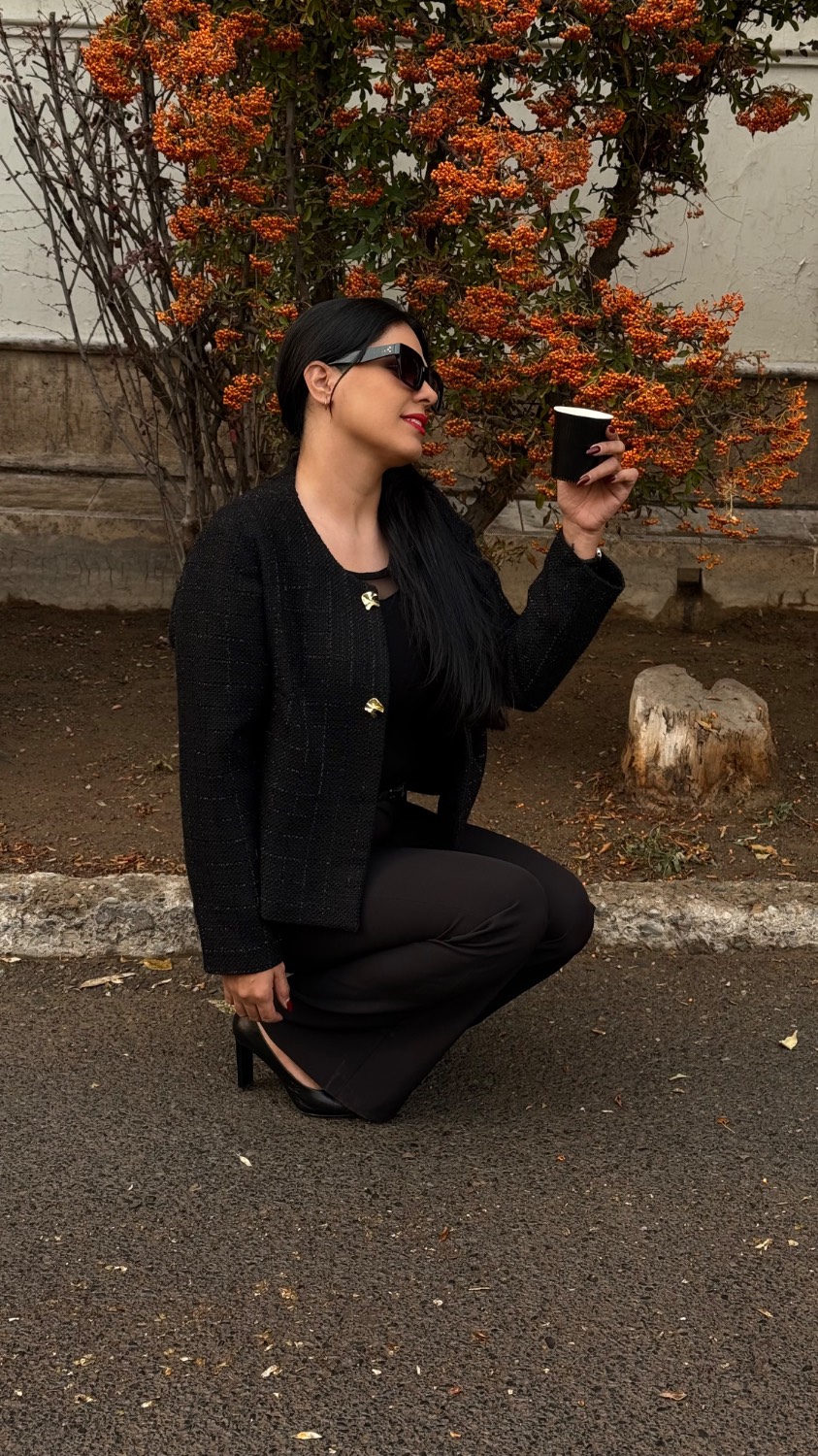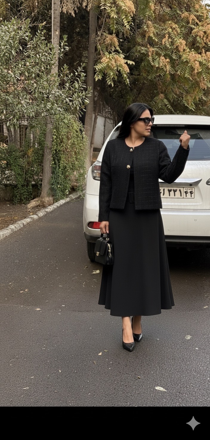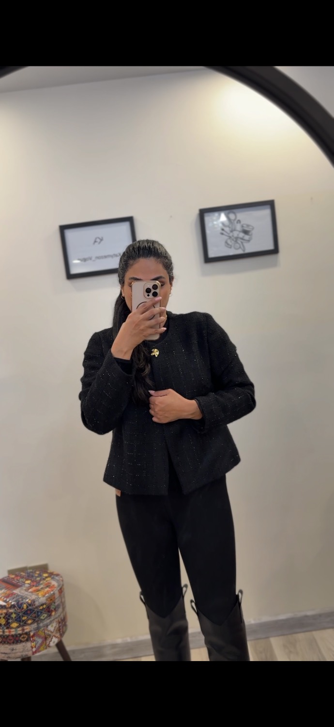 کت شنل مشکی گیسو با رگه های نقره ای